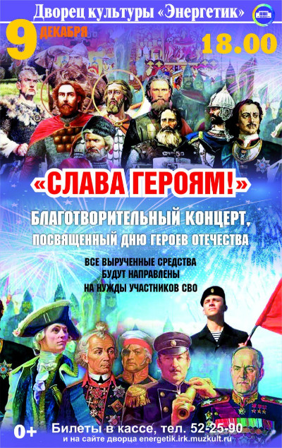 В рамках празднования Дня героев Отечества в 2025 году 9 декабря в 18.00 Дворец культуры «Энергетик» проводит большой благотворительный концерт «Слава героям»