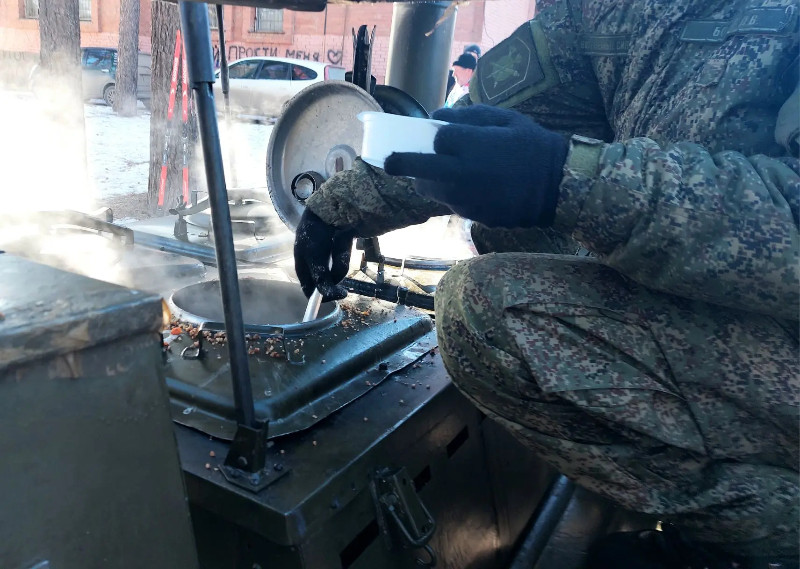 Гречневая каша с тушенкой, приготовленная военными была превосходной!