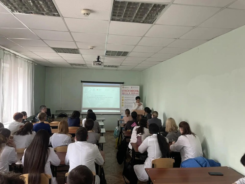 Главная медицинская сестра Шабанова Светлана Викторовна рассказала будующим медикам важность трансплантации костного мозга при лечении онкогематологических заболеваний и необходимость широкой разъяснительной работы для привлечения потенциальных доноров.