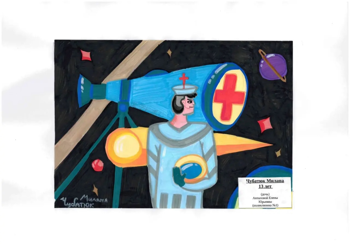 🚀Победитель в категории 11-14 лет: Чубатюк Милана 13 лет, мама-Анпалова Елена Юрьевна врач ФГБУЗ ЦМСЧ-28 ФМБА России. Работы победителей были отправлены в окружной медицинский центр ФМБА России по Сибирскому федеральному округу г.Красноярск,где на уровне округа будет проведен следующий этап голосования.